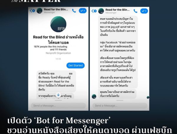 เปิดตัว ‘Bot for Messenger’ ชวนอ่านหนังสือให้คนตาบอดผ่านเฟซบุ๊กใช้ Chat Bot ช่วยดึงเข้ากลุ่มอาสาได้ทันที