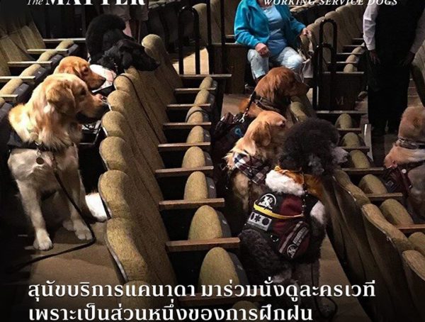 สุนัขบริการแคนาดา มาร่วมนั่งดูละครเวที เพราะเป็นส่วนหนึ่งของการฝึกฝน อยู่กับแสง สี เสียง และคนที่พลุกพล่าน