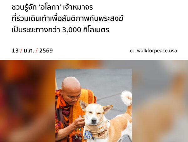 ชวนรู้จัก ‘อโลกา’ เจ้าหมาจรที่ร่วมเดินเท้าเพื่อสันติภาพกับพระสงฆ์ เป็นระยะทางกว่า 3,000 กิโลเมตร