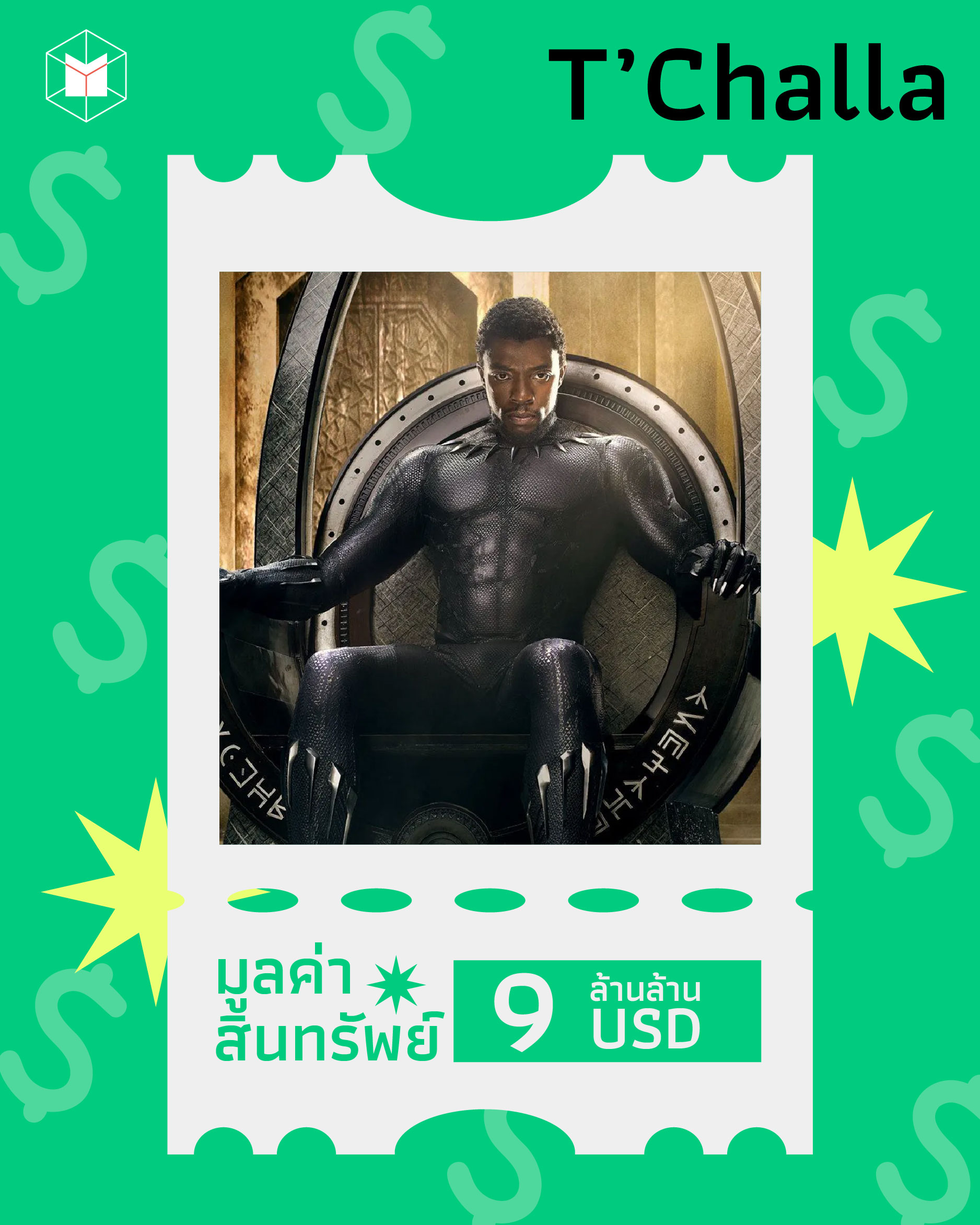 ถ้าพูดถึงคนที่รวยโอเวอร์แบบไม่มีใครเทียบติดต้องยกให้ตัวละครจากจักรวาล Marvel ‘ทีชัลลา’ กษัตริย์แห่งประเทศวากานดา สถานที่เดียวในโลกที่เป็นแหล่งของแร่ไวเบรเนียม วัตถุดิบที่มีความแข็งแกร่งระดับสุดยอด ความร่ำรวยเกินจินตนาการของทีชัลลาก็มาจากมูลค่าทางเศรษฐกิจของแร่ชนิดนี้ ว่ากันว่าประเทศวากานดามีแร่ไวเบรเนียมอยู่ถึง 10,000 หมื่นตัน หากไวเบรเนียม 1 กรัม มีราคาอยู่ที่ 10,000 ดอลลาร์สหรัฐฯ ความมั่งคั่งของวากานดาก็เท่ากับ 9 ล้านล้านดอลลาร์สหรัฐฯ (เลข 9 แล้วเติมศูนย์ข้างหลังอีก 12 ตัว)
