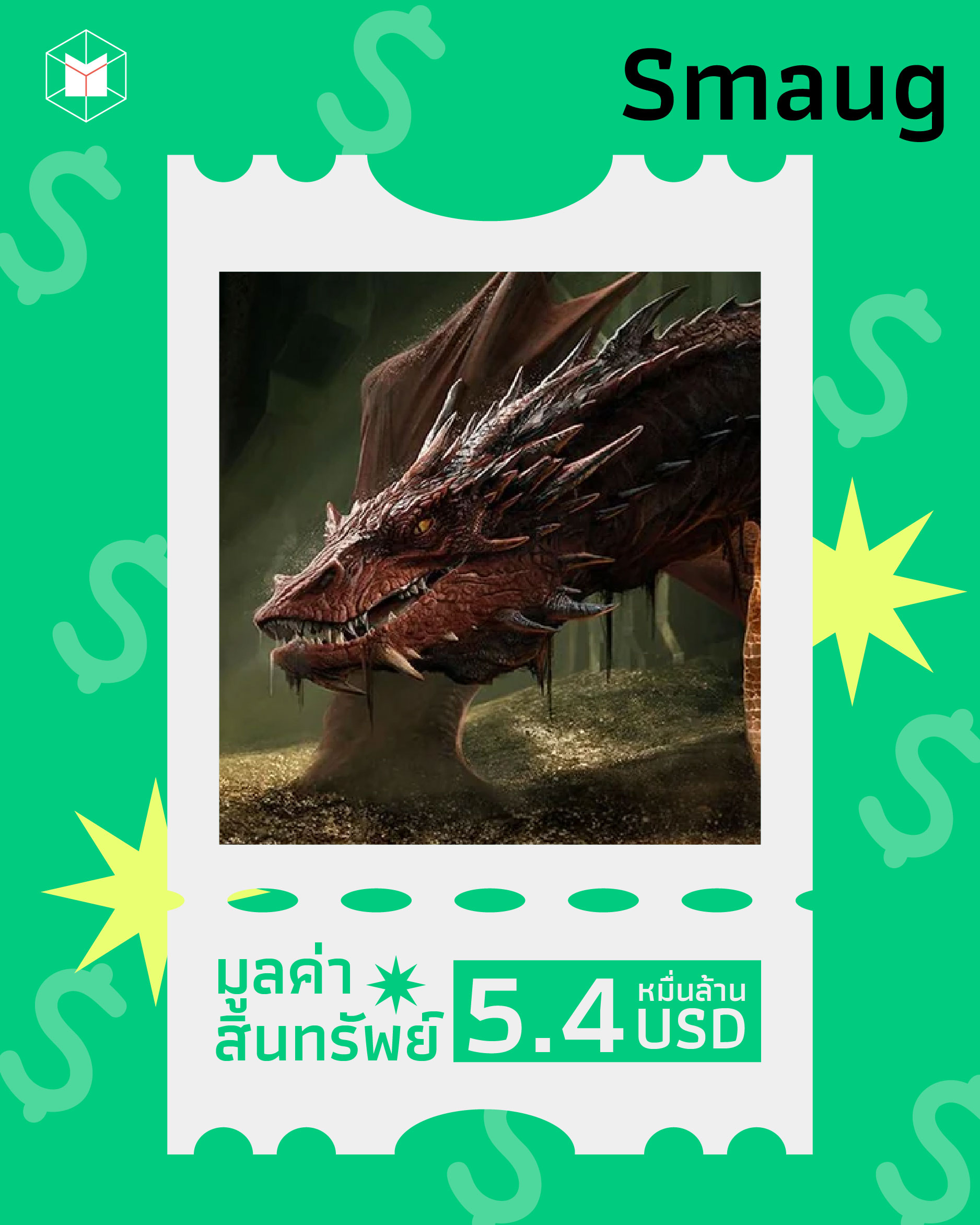 มหาเศรษฐีคนนี้พิเศษกว่าใครอื่น เพราะเขาไม่ใช่คน ‘สม็อก’ หรือ สเมาก์ คือมังกรแห่งมิดเดิลเอิร์ธ ที่ไม่ได้เกิดมาบนกองเงินกองทอง แต่อยู่บนกองเงินกองทองเลยต่างหาก ความร่ำรวยทั้งหมดของสเมาก์มาจากกองสมบัติของอาณาจักรคนแคระ และได้รับการจัดอันดับให้เป็นตัวละครที่ร่ำรวยที่สุดอันดับ 1 จาก Forbes Fictional 15 ในปี 2012