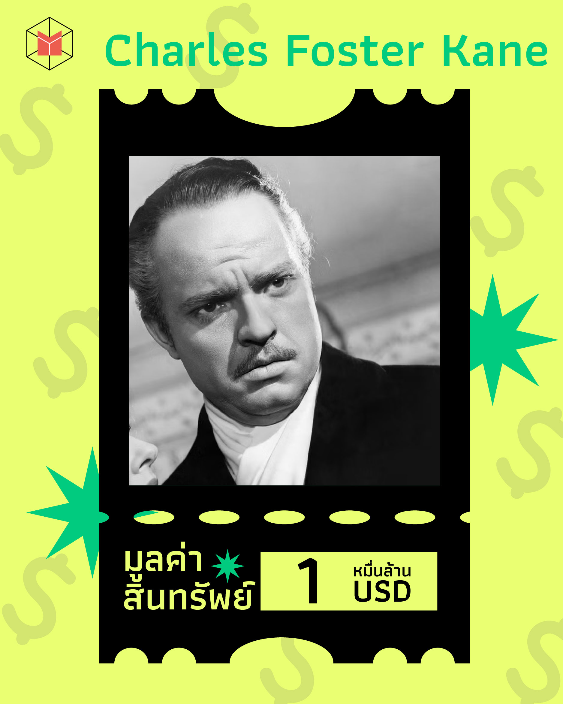 ‘ชาร์ลส์ ฟอสเตอร์ เคน’ คือมหาเศรษฐีจากหนังอมตะตลอดกาลอย่าง Citizen Kane (1941) ชาร์ลส์ร่ำรวยในฐานะเจ้าพ่อธุรกิจสื่อ เขาเป็นเจ้าของตั้งแต่หนังสือพิมพ์แจกฟรี หนังสือพิมพ์แท็บลอยด์ วิทยุ โทรทัศน์ และสตูดิโอภาพยนตร์ น่าเศร้าที่เขาใช้ชีวิตในช่วงบั้นปลายด้วยการตัวอยู่แต่ในคฤหาสน์ และตายไปพร้อมกับปมวัยเด็ก …คนใกล้ตัวเขาว่ามางี้นะ