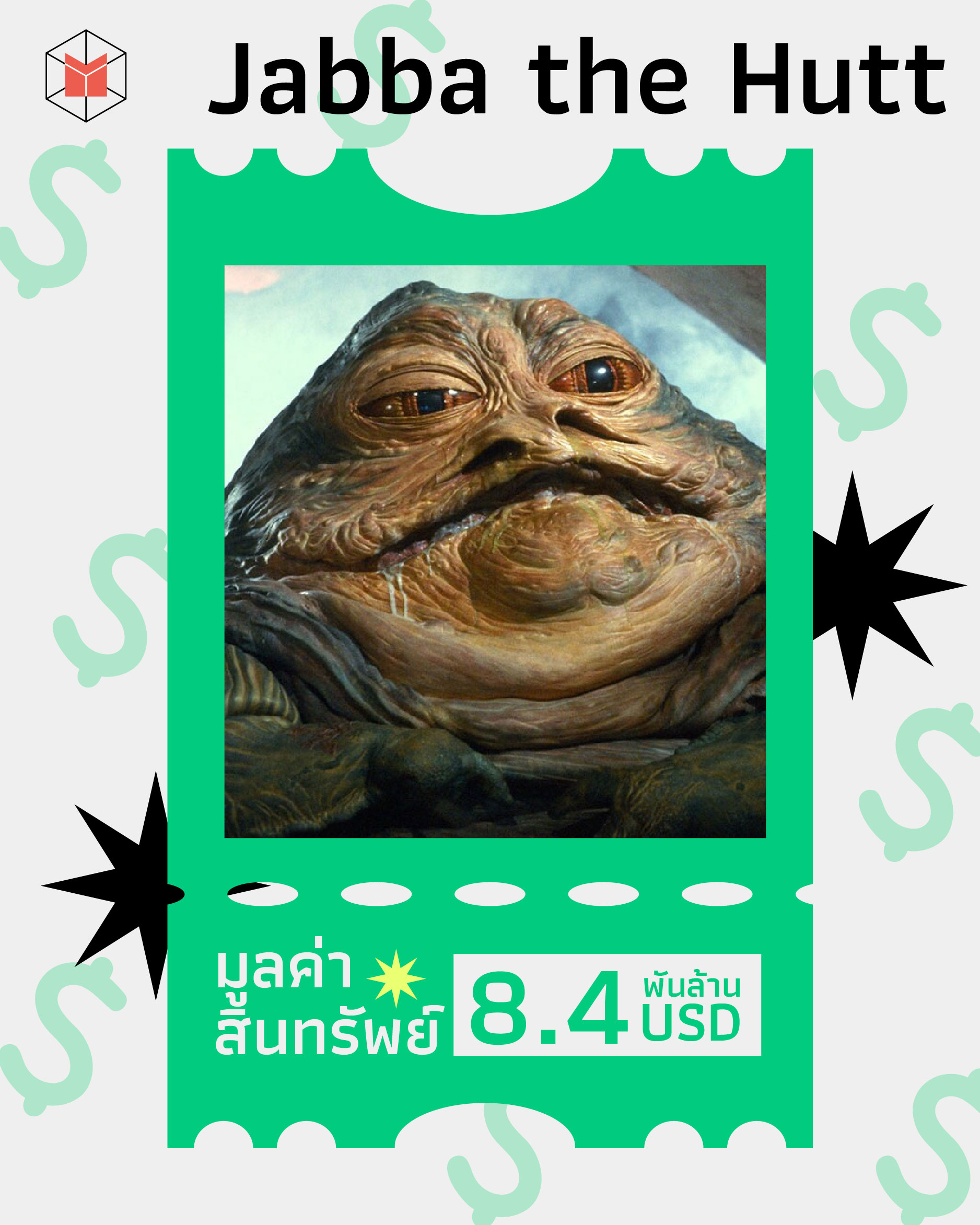 อย่าให้ความอ้วนท้วนและรูปลักษณ์เหมือนหอยทากหลอกเอาได้ ‘จับบา เดซิลิจิก ทิอูเร’ หรือ Jabba the Hutt คือสิ่งมีชีวิตสายพันธุ์ฮัตต์ที่ร่ำรวยเป็นอันดับต้นๆ ของจักรวาล Star Wars ใครๆ ต่างรู้กันดีว่าเขาคือเจ้าพ่ออาชญากรรมที่เกี่ยวพันกับกลุ่มโจรสลัด การค้าทาส และลักลอบสินค้าผิดกฎหมาย