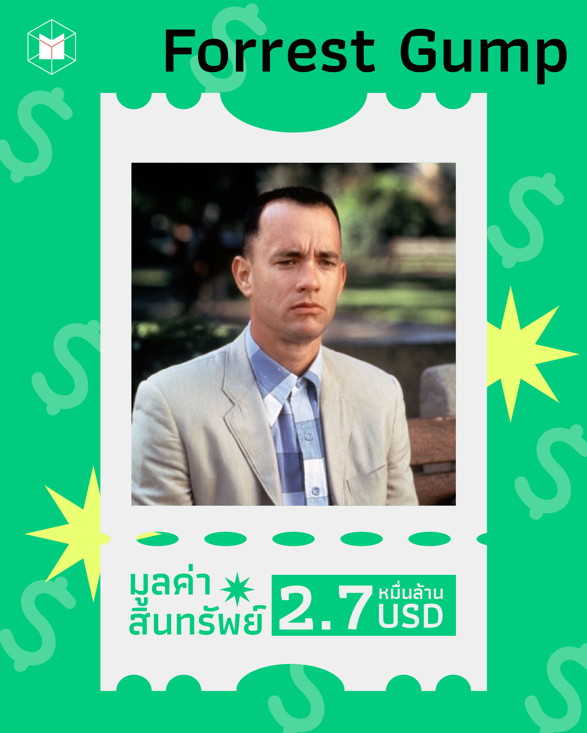 อาจจะด้วยความโชคดีและการมีคู่หูทางธุรกิจวิสัยทัศน์ไกล ‘ฟอร์เรสต์ กัมป์’ จึงกลายเป็นมหาเศรษฐีระดับพันล้านได้อย่างน่าเหลือเชื่อ กัมป์เล่าว่า ผู้หมวดแดน หุ้นส่วนธุรกิจของเขาได้นำกำไรที่ได้จากการจับกุ้งไปลงทุนใน “บริษัทผลไม้อะไรสักอย่างนึง” ทราบภายหลังบริษัทที่ว่านั้นคือ Apple ของ สตีฟ จ็อบส์ นั่นเอง และลือกันว่าแรงบันดาลใจในการสร้างไอแพด มาจากการที่จ็อบส์ต้องการสร้างคอมพิวเตอร์ที่ “ง่ายพอให้ฟอร์เรสต์ใช้ได้”