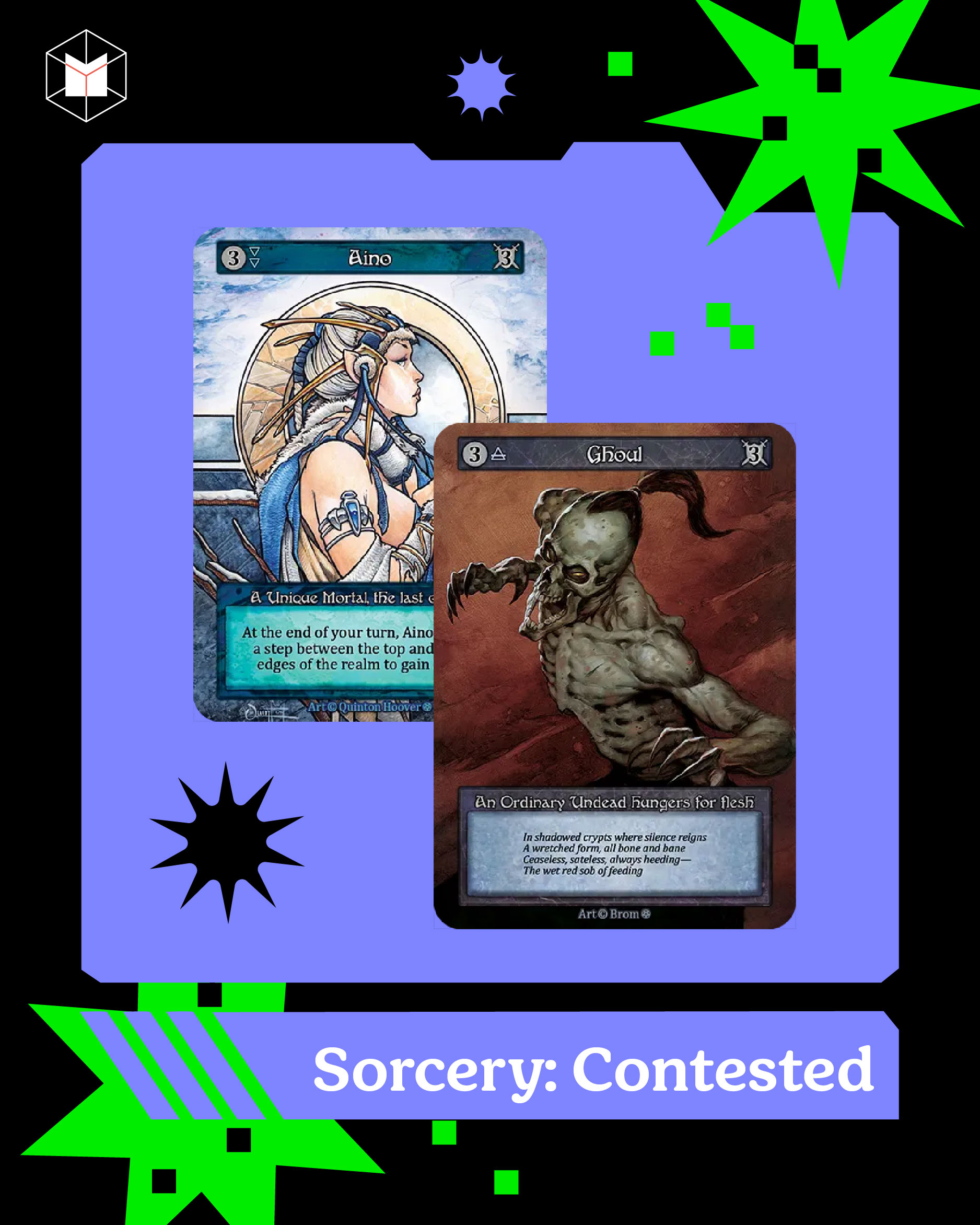 Sorcery: Contested Realm นำเสนอความโดดเด่นของตัวเองด้วยงานอาร์ตที่คล้ายกับ Magic: The Gathering ยุคคลาสสิก ภาพวาดต่างๆ มีทั้งความดิบ และอาจจะน่ากลัวในแบบดาร์กแฟนตาซี อีกทั้งยังเป็นการวาดมือด้วยดินสอ สีน้ำ สีน้ำมัน สีอะคริลิก ดูแล้วนึกถึงปกหนังสือวรรณกรรมแฟนตาซียุคเก่าๆ