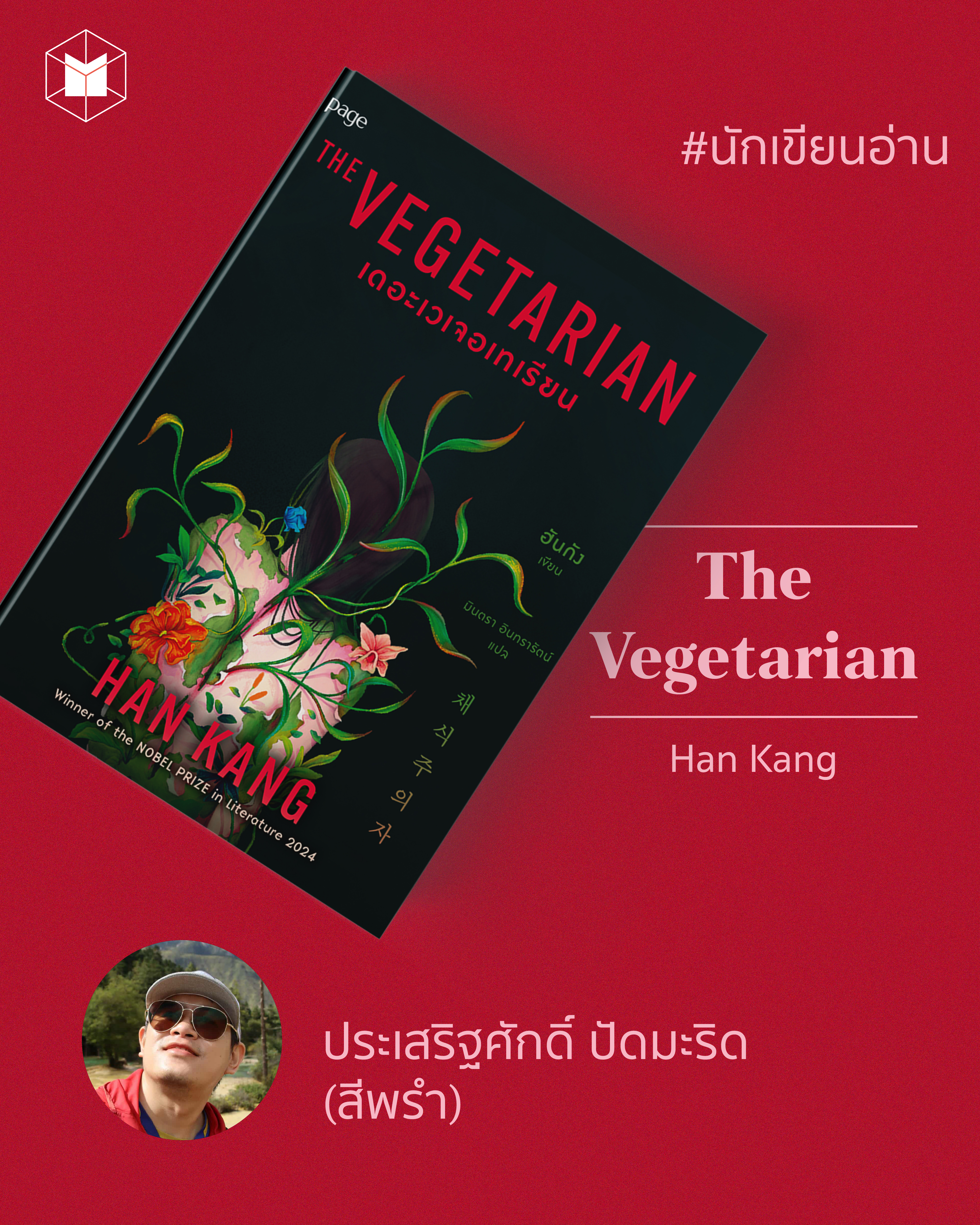 “ส่วนหนังสือเพิ่งอ่านจบเร็วๆ นี้เลยคือ Vegetarian ของ ฮันกัง (Han Kang) อยากรู้ว่าทำไมเขาถึงได้โนเบล และคิดว่าประเด็นในเล่มค่อนข้างเข้มข้น คิดว่าไม่เหมาะกับเด็ก เพราะมีประเด็นความรุนแรงในนั้น แต่เหมาะอย่างมากสำหรับคนที่อยากอ่านประเด็นเฟมินิสต์หนักๆ ที่สะท้อนปัญหาความไม่เท่าเทียมกันทางเพศ