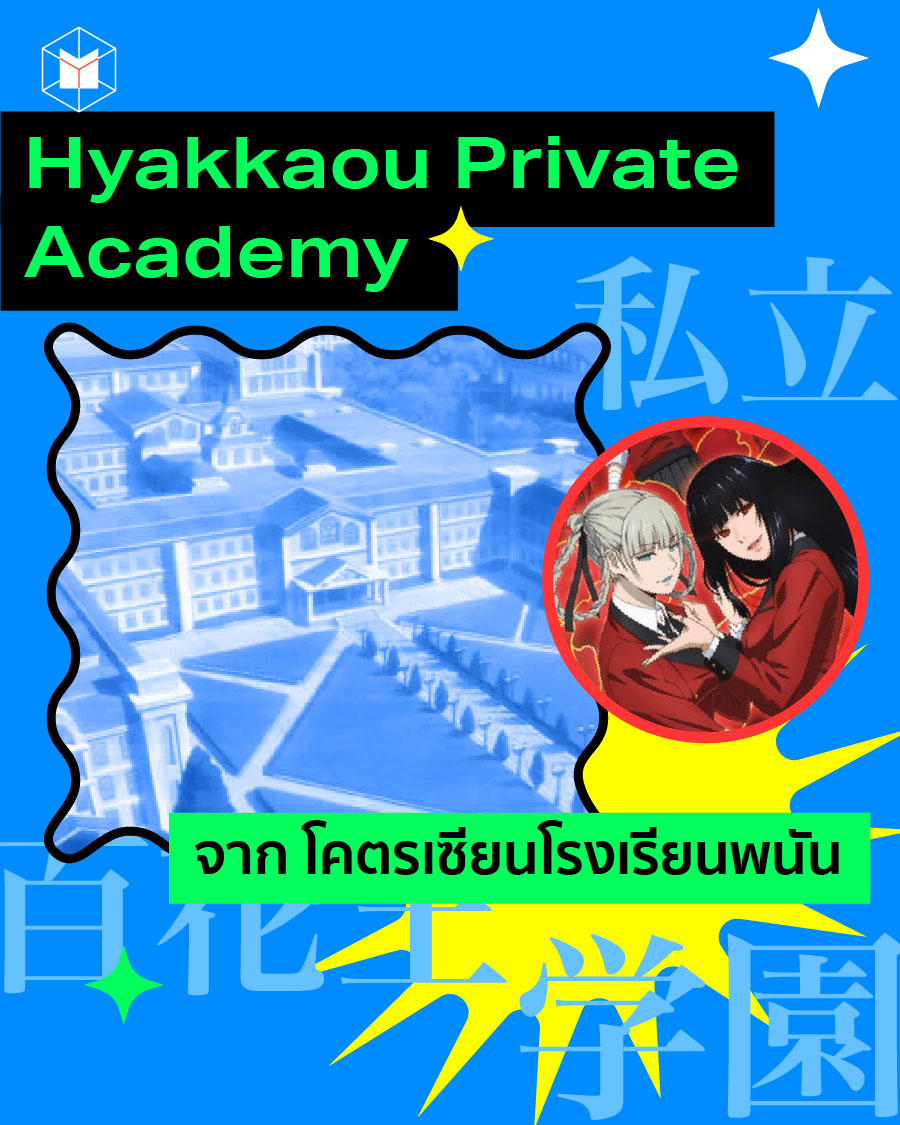 หากคุณเป็นคนที่มองการพนันไม่ใช่เรื่องของโชค แต่เป็นเกมจิตวิทยาและการวางเกมกลยุทธ์ ชัยชนะคือผลลัพ์ของการอ่านใจคนได้อย่างทะลุปรุโปร่ง โปรดส่งใบสมัครเข้าเรียนมาที่ ‘Hyakkaou Private Academy’ จาก Kakegurui (โคตรเซียนโรงเรียนพนัน) กันได้เลย นักเรียนที่นี้ไม่ต้องมีผลการเรียนที่ดีเลิศ หรือมีสมรรถภาพร่างกายแข็งแกร่งเหนือใคร เพราะสิ่งเดียวที่มีความหมายคือการพนันและการเดิมพัน โดยมีอำนาจและสถานะทางสังคมเป็นตัววัดผลความสามารถนักเรียน