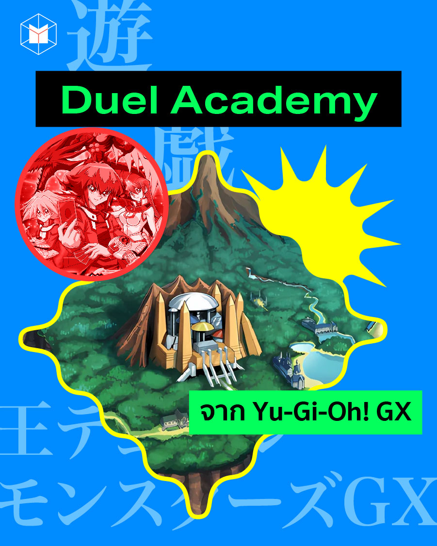 แค่การฝึกฝนอย่างเดียวคงจะไม่พอ เพราะการก้าวขึ้นสู่การเป็นดูเอลคิงได้นั้น อาจต้องอาศัยสถาบันการศึกษาที่เชี่ยวชาญเฉพาะทางเข้ามาช่วยเสริมสร้างทักษะด้วยเช่นกัน ‘Duel Academy’ จาก Yu-Gi-Oh! GX คือสถานที่ซึ่งพร้อมจะขัดเกลานักดูเอล ด้วยการอบรมและการแข่งขันอย่างดุเดือด เพื่อพัฒนาฝีมือของผู้เล่นให้ไปสู่ระดับโปรลีคได้อย่างสมบูรณ์แบบ