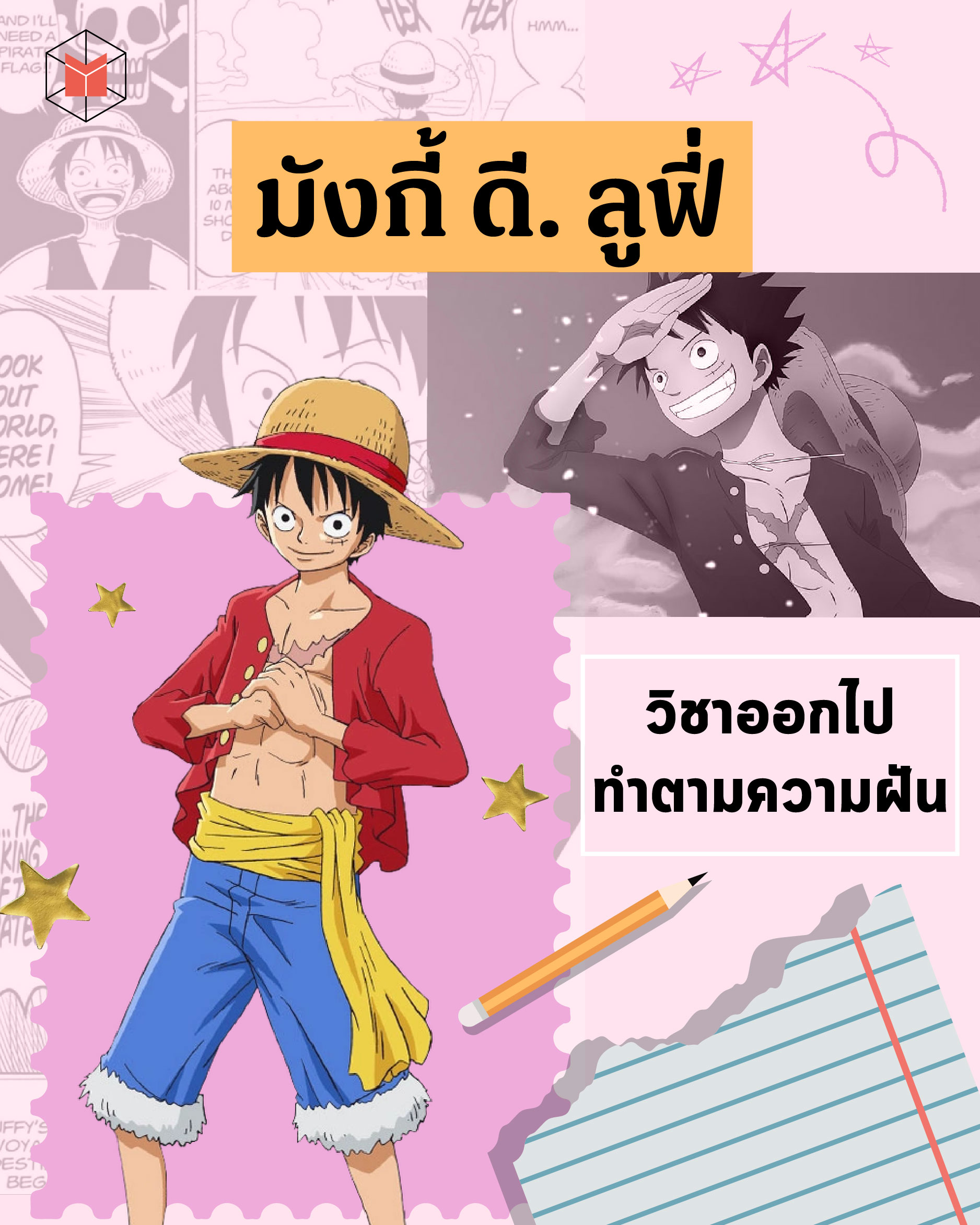 ทุกวันนี้หลายคนต่างก็รู้สึกเบื่อหน่ายกับการก้มหน้าก้มตาทำงานที่ไม่มีวันจบสิ้น จนบางทีก็เผลอละทิ้งความฝันของตนเองเอาไปตั้งแต่เมื่อไหร่ไม่รู้ กว่าจะรู้ตัวอีกที ความฝันนั้นก็หายไปเรียบร้อยแล้ว เพื่อให้ชีวิตกลับกระชุ่มกระชวยจากการวิ่งไล่ตามความฝันอีกครั้ง ‘มังกี้ ดี. ลูฟี่’ จาก One Piece จึงขอมาสอน ‘วิชาออกไปทำตามความฝัน’ เพื่อชวนทุกคนให้ทำให้ฝันเป็นจริงกัน