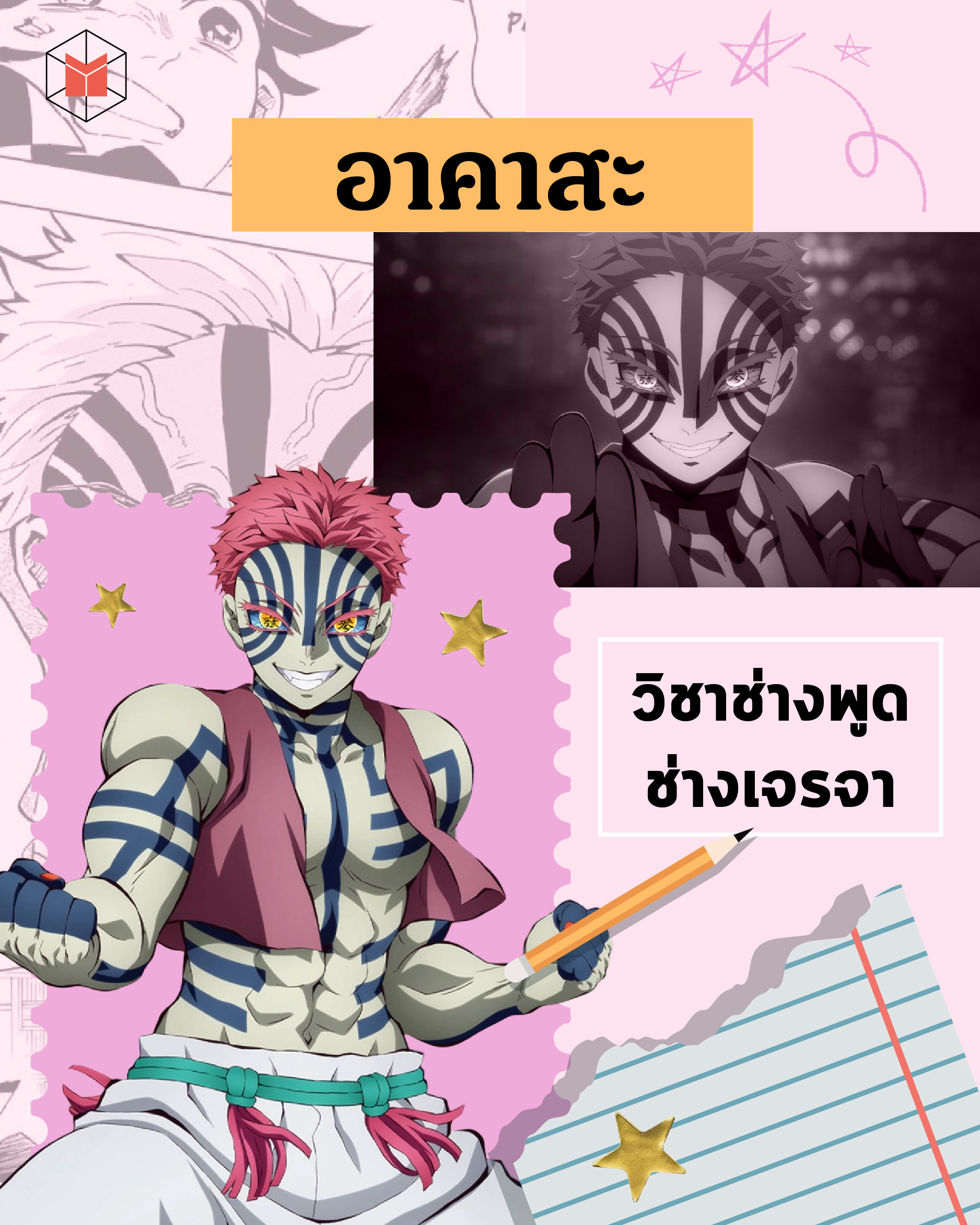 ในโลกอนิเมะ คงไม่มีตัวละครตัวไหนที่ทั้งมีฝีมือการต่อสู้ระดับท็อป แถมยังมีฝีปากคมคายไปมากกว่า ‘อาคาสะ’ อสูรข้างขึ้นลำดับที่ 3 จาก ดาบพิฆาตอสูร หรือ Kimetsu no Yaiba กันอีกแล้ว เพราะเอกลักษณ์โดดเด่นขอเจ้าตัวไม่ใช่แค่ทักษะการต่อสู้กับเหล่านักล่าอสูร แต่ยังเป็นคารมคมคายในการชักชวน (หรือล่อลวง?) ให้ฝ่ายตรงข้ามมาร่วมเป็นอสูรเช่นเดียวกันกับเขา ถ้าเจ้าตัวจะต้องสอนวิชาใดสักวิชาหนึ่ง คงจะต้องเป็น ‘วิชาช่างพูดช่างเจรจา’ แล้วล่ะ