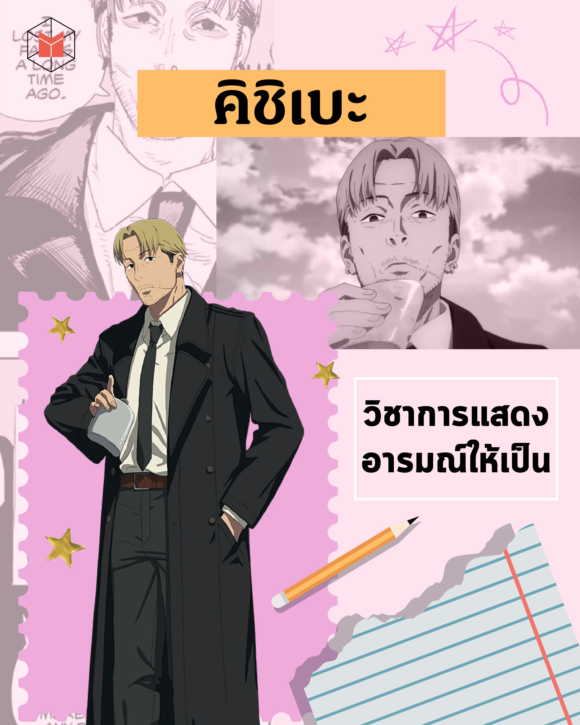 เมื่อพูดถึงอนิเมะอย่าง Chainsaw Man ‘คิชิเบะ’ คงเป็นอีกตัวละครที่หลายคนนึกถึง ด้วยมาดที่ดูนิ่ง พูดน้อย แต่ต่อยหนัก จึงกลายเป็นตัวละครขวัญใจของแฟนอนิเมะได้อย่างไม่ยากเย็น และหากตัวของนักล่าปีศาจคนนี้จะสอนสักวิชา คงจะต้องเป็น ‘วิชาการแสดงอารมณ์ให้เป็น’ อย่างแน่นอน