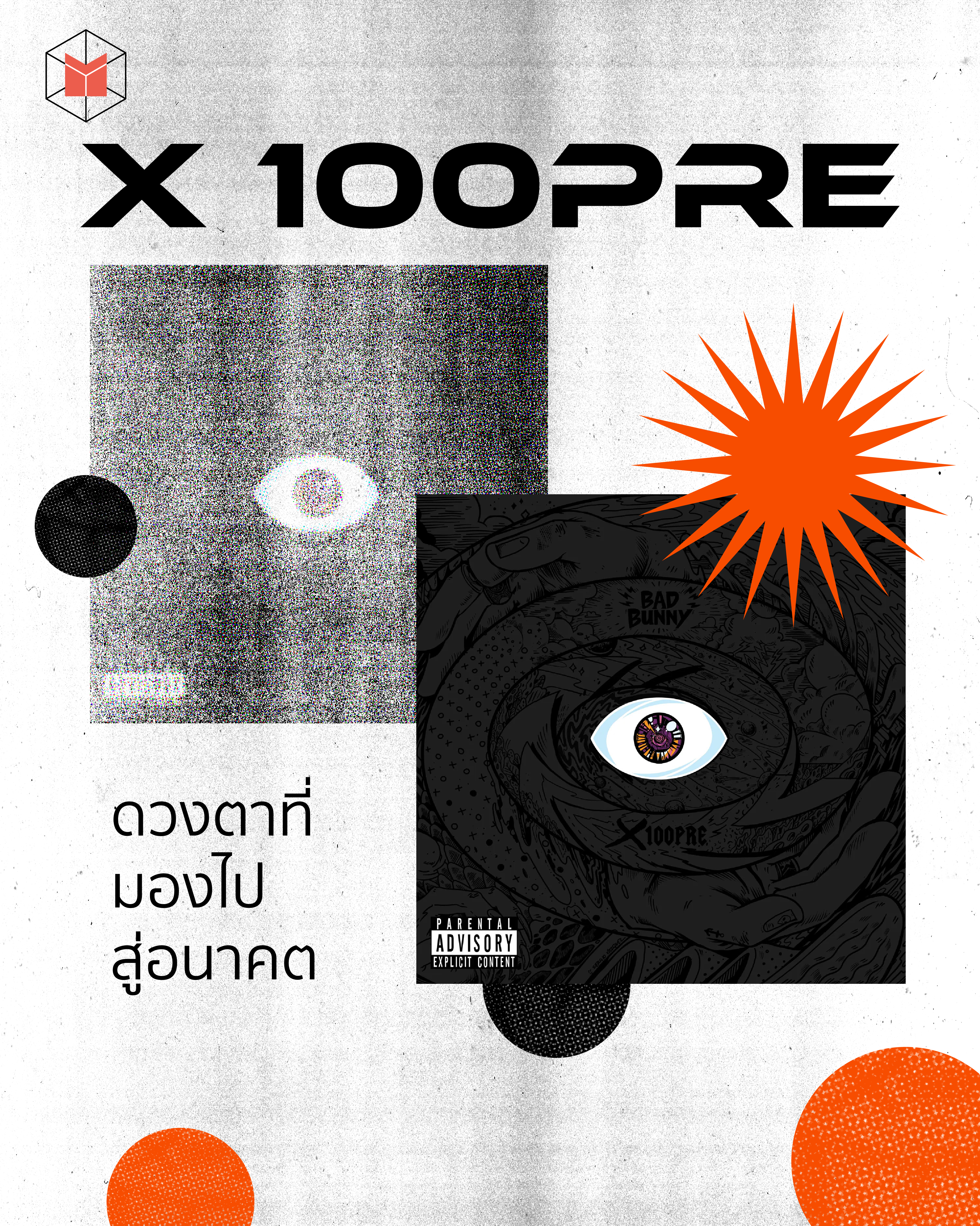เริ่มกันที่สตูดิโออัลบั้มแรกของแบด บันนี่ กับ ‘X 100pre’ ที่มาพร้อมปกอัลบั้มสีดำขลับ มีลวดลายแขน 2 ข้างซ่อนอยู่เบื้องหลัง และกำลังโอบอุ้มดวงตากลมโตตรงกลางเอาไว้