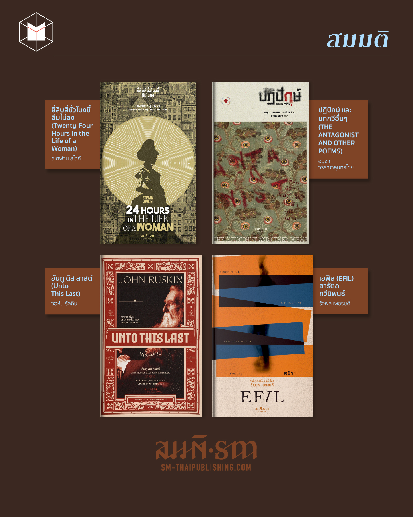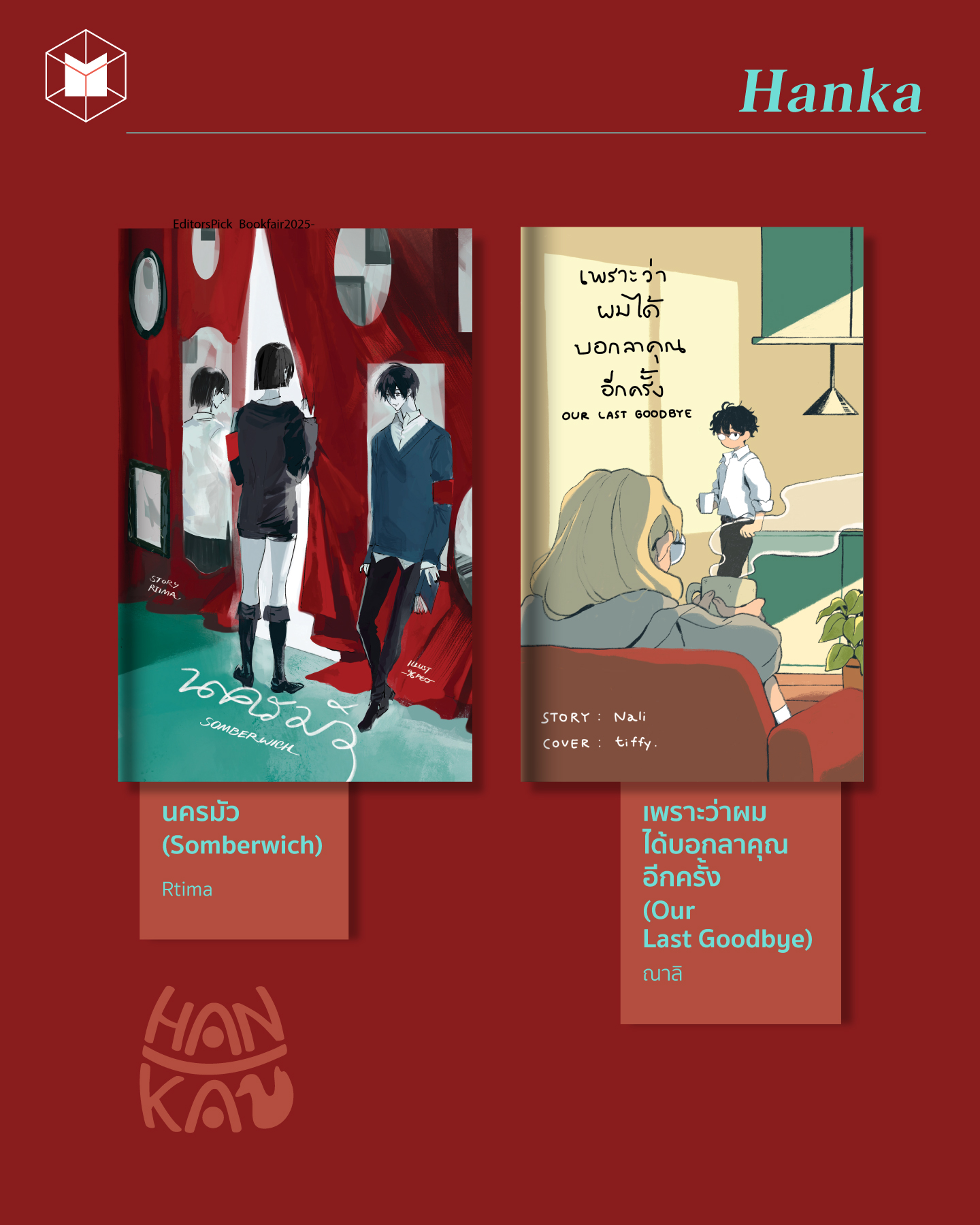 พร้อมชี้เป้าว่าถ้าเคยถูกอกถูกใจเล่มไหนมาก่อน รับรองว่าต้องชอบเล่มนี้ กลิ่นอายคล้ายกัน ต่อเนื่องมู้ดเดิมไม่มีสะดุด หรือจะเลือกอ่านเฉพาะเล่มใหม่เพิ่งตีพิมพ์ก็ได้ทั้งนั้น มีทั้งสำนักพิมพ์รุ่นเก๋า สำนักพิมพ์เจนใหม่ ดราม่าน้ำตาซึม อบอุ่นชุบชูใจ สืบสวนชวนสงสัย ลับคมความคิด ครบทุกสไตล์การอ่านให้เลือกตามอัธยาศัย