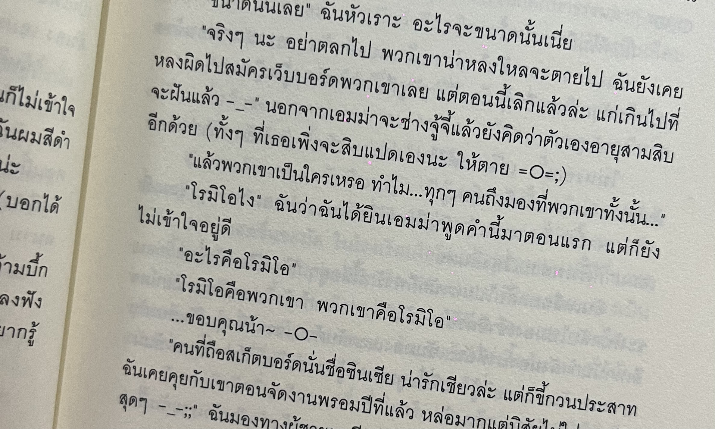 อีโมติคอนหลังประโยค คือกิมมิกที่ขาดไม่ได้ เราใช้ชีวิตกับนางเอกและพระเอกที่ชื่ออลังการเหมือนจะหาไม่ได้ในชีวิตจริง นัยน์ตาสีขุ่น กับผมสีเฮเซลนัท คือโลกอีกใบที่แจ่มใสพาเราเข้าไปสัมผัส