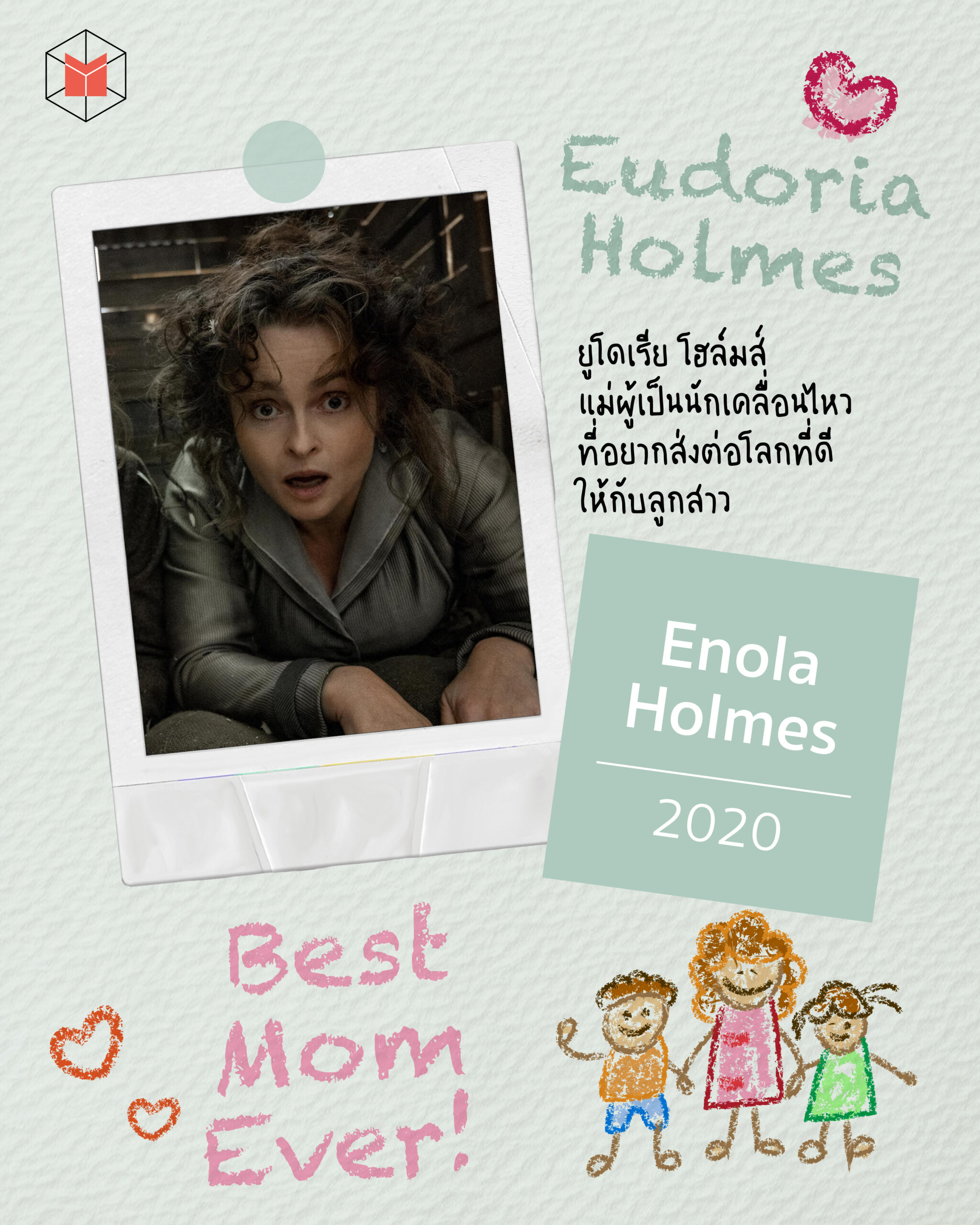 Enola Holmes คือเรื่องราวที่แยกมาจากนิยายสืบสวนชื่อดังอย่าง เชอร์ล็อก โฮล์ม ซึ่งทำให้เราเห็นความสัมพันธ์ในครอบครัวของนักสืบอัจฉริยะมากขึ้น เรื่องนี้เราจะได้รู้จัก ยูโดเรีย โฮล์มส์ คุณแม่ของลูกทั้ง 3 คน อย่างไมครอฟ์ เชอร์ล็อก และเอโนล่า แต่เนื่องจากสามีเสียชีวิตไปแล้วหลายปี และลูกชายทั้ง 2 คนที่ต้องออกไปทำงาน คุณแม่อย่างยูโดเรียจึงต้องเลี้ยงดูเอโนล่า น้องสาวคนเล็กเพียงลำพังในชนบท