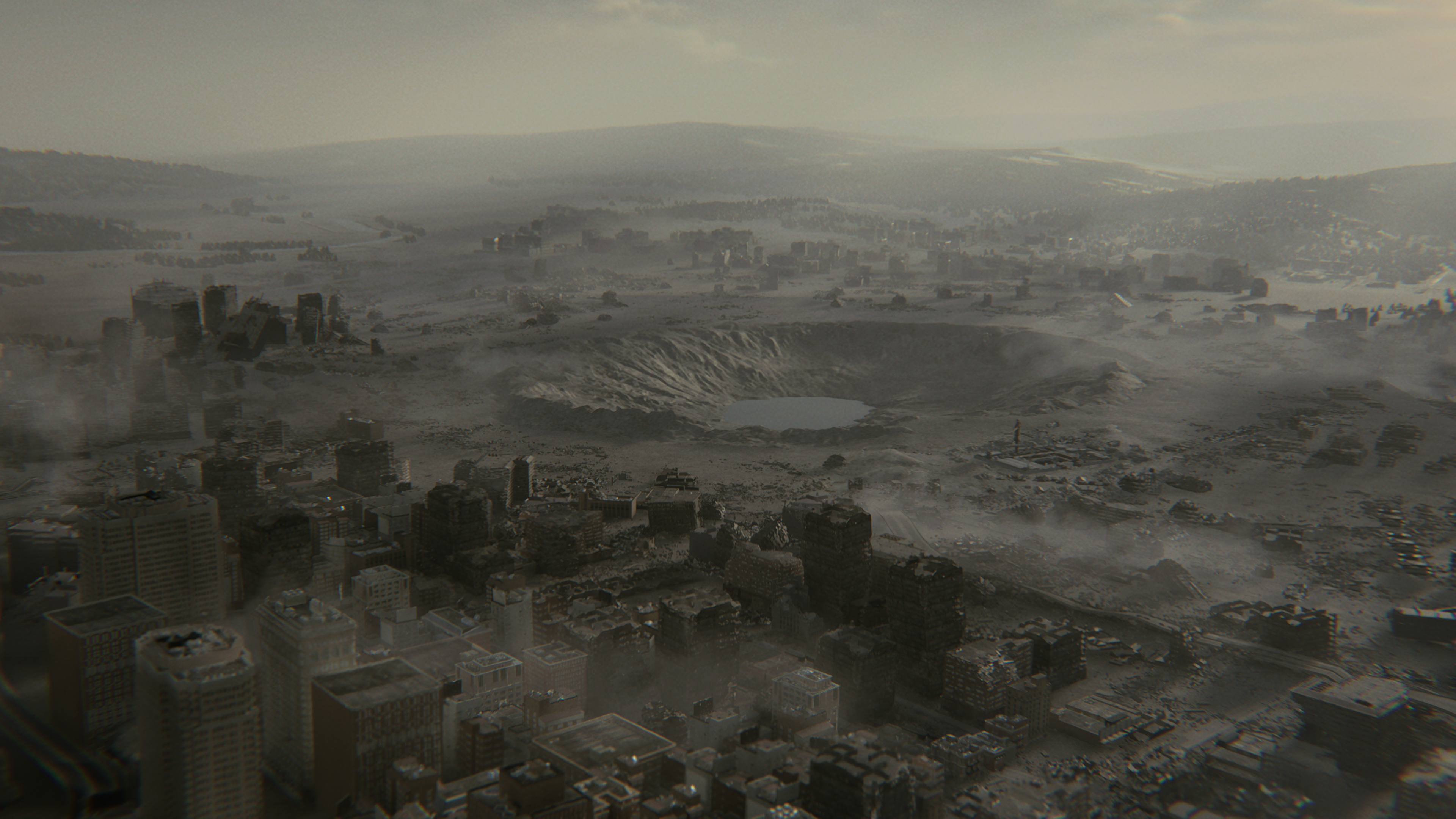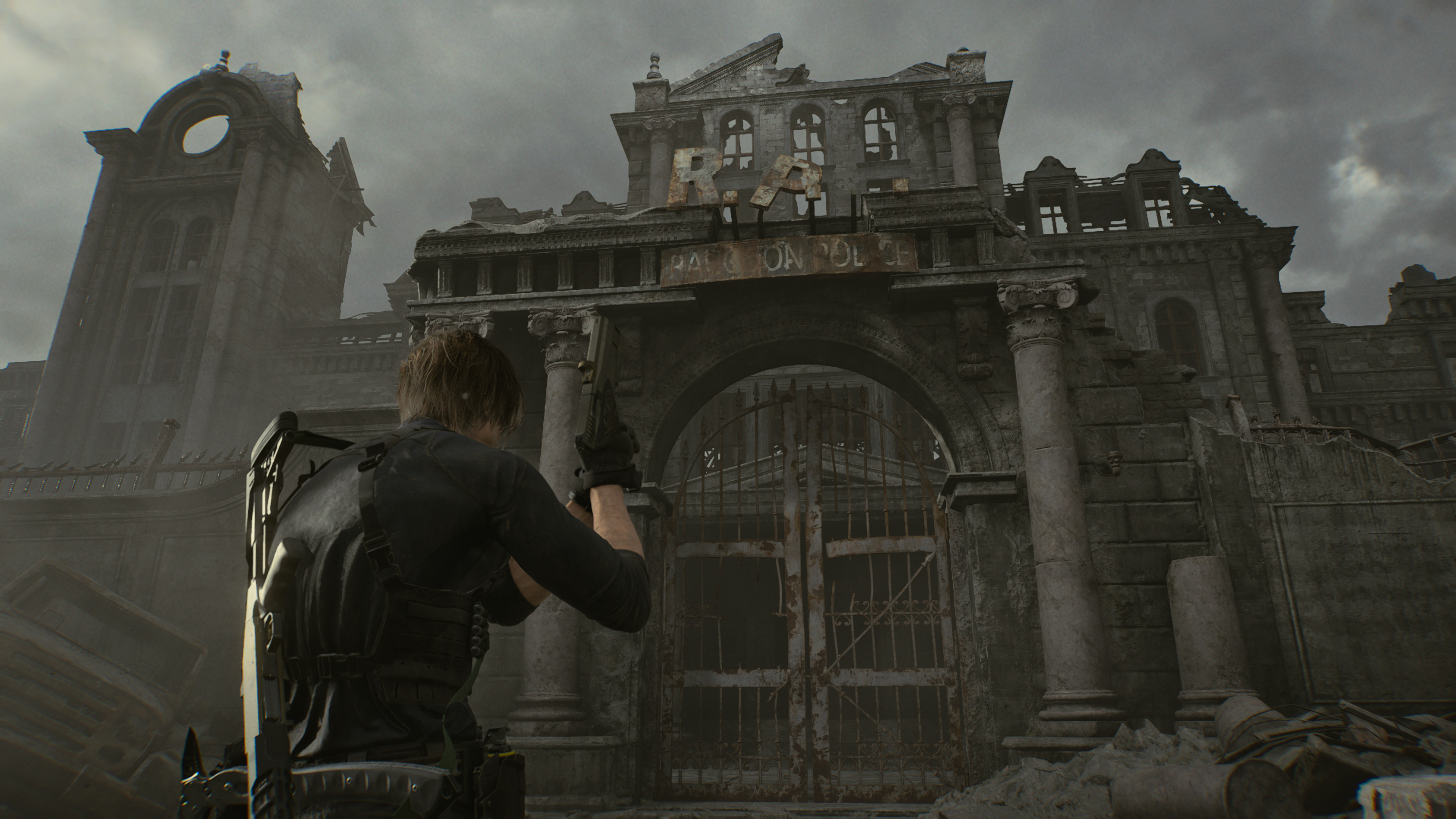 ยิ่งไปกว่านั้น หากดำเนินเรื่องต่อไป เราจะได้ไปเยือนยังสถานที่ที่แฟนเกมคุ้นเคยที่สุดอย่างแรคคูนซิตี้ ที่บัดนี้เหลือเพียงซากปรักหักพัง ภาพมุมสูงเผยให้เห็นหลุมระเบิดใหญ่มหึมา ผลจากขีปนาวุธที่หมายจะหยุดยั้งการแพร่ระบาดของไวรัสและปกปิดความผิดพลาดของบริษัท Umbrella สถานีตำรวจแรคคูนเองก็อยู่ในสภาพย่ำแย่ไม่แพ้กัน ความอิ่มเอมจาก Resident Evil Requiem อยู่ตรงที่การให้โอกาสผู้เล่นทั้งได้สัมผัสบรรยากาศแสนคุ้นเคย กลับไปเยือนความทรงจำเก่าผ่านสถานที่เดิมหลังเกิดผลกระทบ การได้เล่นเป็นลีออนยิ่งขับเน้นส่วนนี้ให้ยอดเยี่ยมขึ้นไปอีก เราได้เห็นป้ายต้อนรับลีออนที่หลุดร่วงแถมฝุ่นเกรอะ ร้านขายปืนกับประสบการณ์ช้ำใจ การเผชิญหน้ากับศัตรูเก่า พิมพ์ดีดพังๆ ที่ไม่สามารถเซฟเกมได้อีกแล้ว