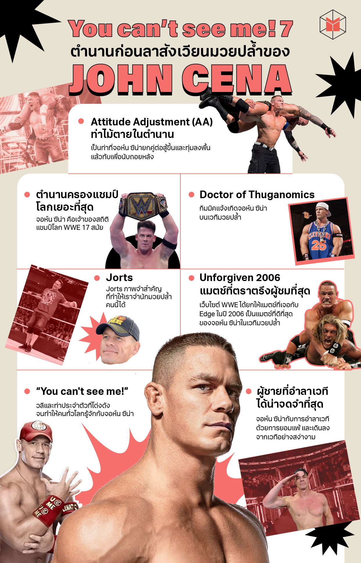 คอนเสิร์ตยังมีวันเลิกรา นักมวยปล้ำเองก็มีวันลงจากสังเวียน เพื่อทบทวนถึงความเป็นตำนานของจอห์น ซีน่า The MATTER จึงอยากพาทุกคนไปรู้จักกับความเป็นสุดยอดในด้านต่างๆ ของเจ้าตัวในฐานะนักมวยปล้ำกัน
