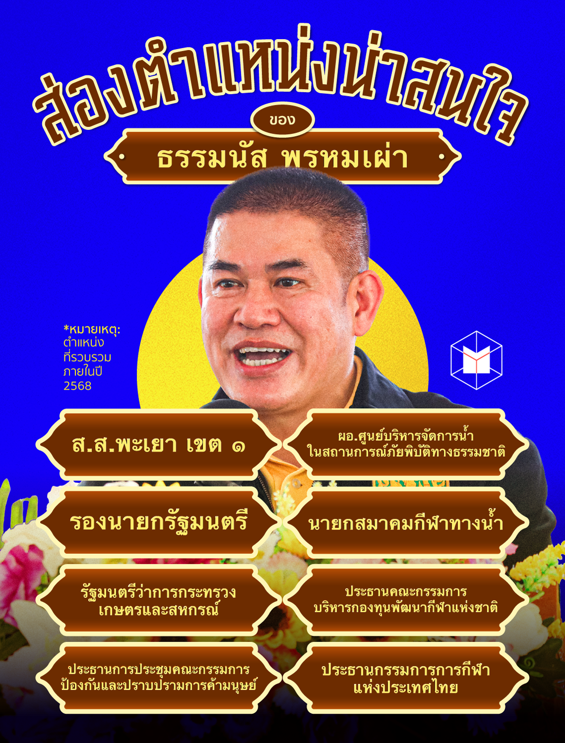 ในเวลานี้ปฏิเสธไม่ได้เลยว่าโซเชียลมีเดียและสื่อมวลชนต่างพูดถึง ‘ธรรมนัส พรหมเผ่า’ กันอย่างกว้างขวาง—มากเสียจนคนที่ไม่ตามการเมืองยังตั้งข้อสังสัยเพราะตามเก็บข้อมูลกันไม่ทันว่า “ตกลงเขาดำรงตำแหน่งอะไรบ้างกันนะ?”