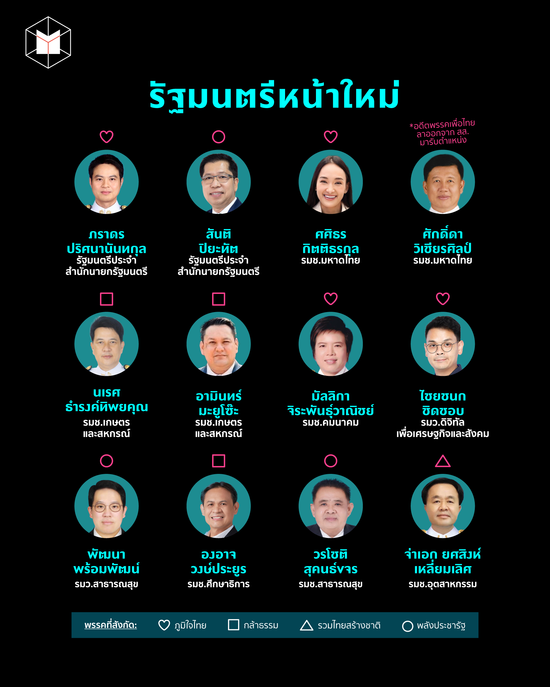 รัฐมนตรีใหม่หน้าคุ้น รับตำแหน่งติดต่อจากรัฐบาลเพื่อไทย