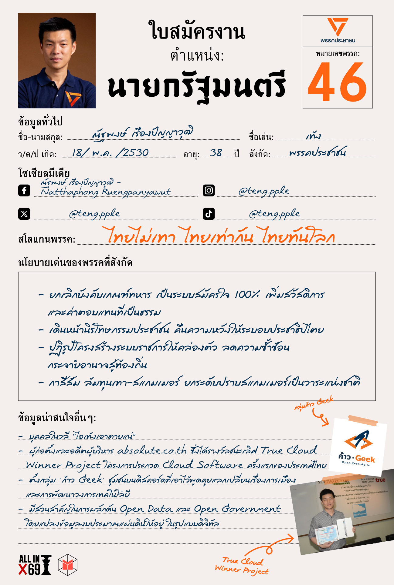 การเลือกตั้ง 2569 ใกล้เข้ามาแล้ว พรรคการเมืองต่างๆ เดินหน้าหาเสียง เสนอนโยบาย พร้อมเปิดตัวแคนดิเดตนายกรัฐมนตรี โดยหนึ่งในนั้นคือ เท้ง—ณัฐพงษ์ เรืองปัญญาวุฒิ จากพรรคประชาชน
