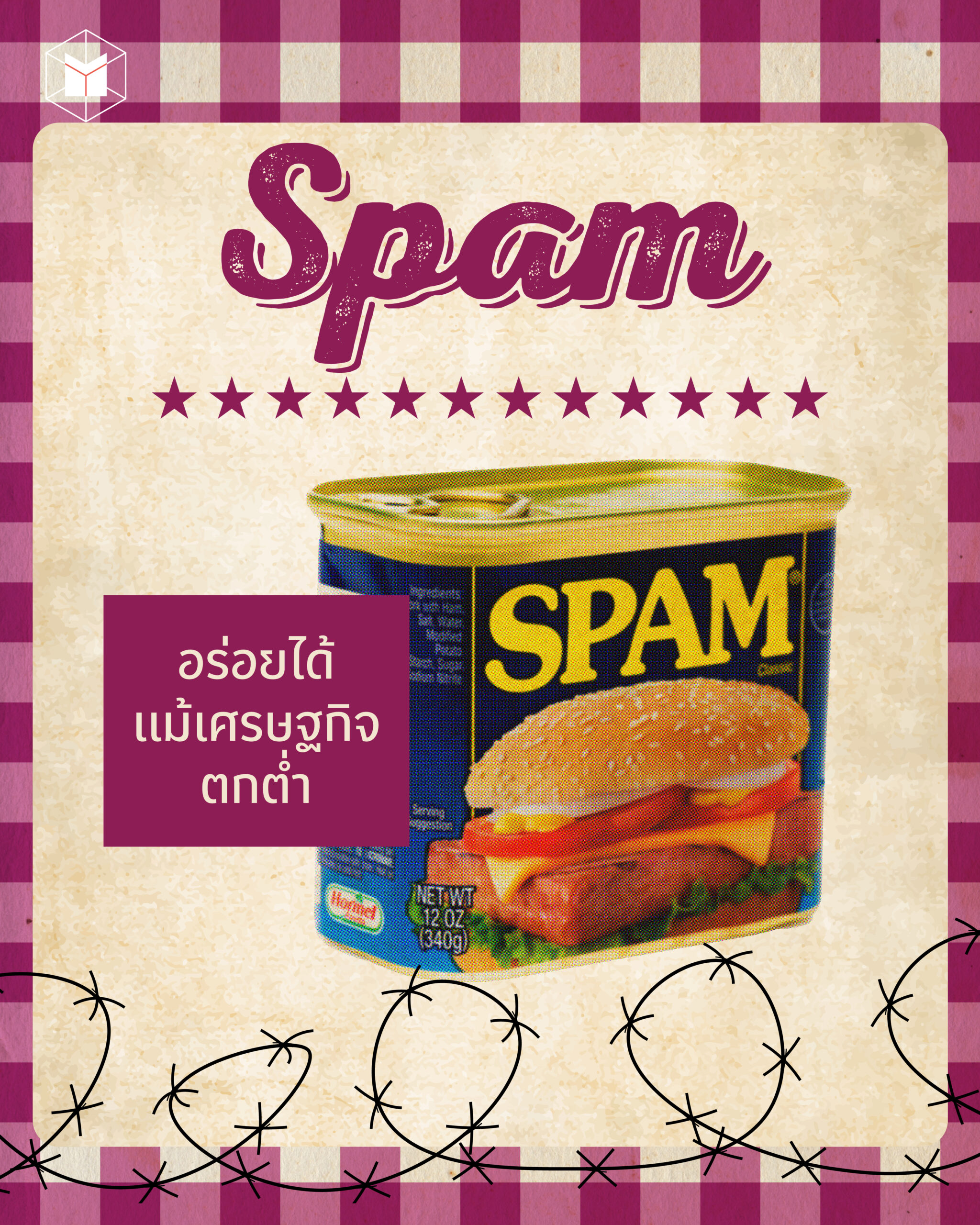 ในช่วงสงครามโลกครั้งที่สอง มีตัวเลขว่าอเมริกาซื้อสแปมไปมากกว่า 70,000 ตัน และถ้าเราดูการกระจายตัวของฐานทัพสหรัฐในประเทศต่างๆ เราจะเห็นวัฒนธรรมอาหารโดยเฉพาะในแถบเอเชียและบางพื้นที่เช่นฮาวาย มีสแปมเข้าไปเป็นส่วนประกอบของอาหาร เช่น ซูชิ ข้าวกับสแปม โปเกะแบบฮาวาย เราจะพบเมนูสแปมได้ทั้งในเกาหลี ญี่ปุ่น และแถบฮาวาย
