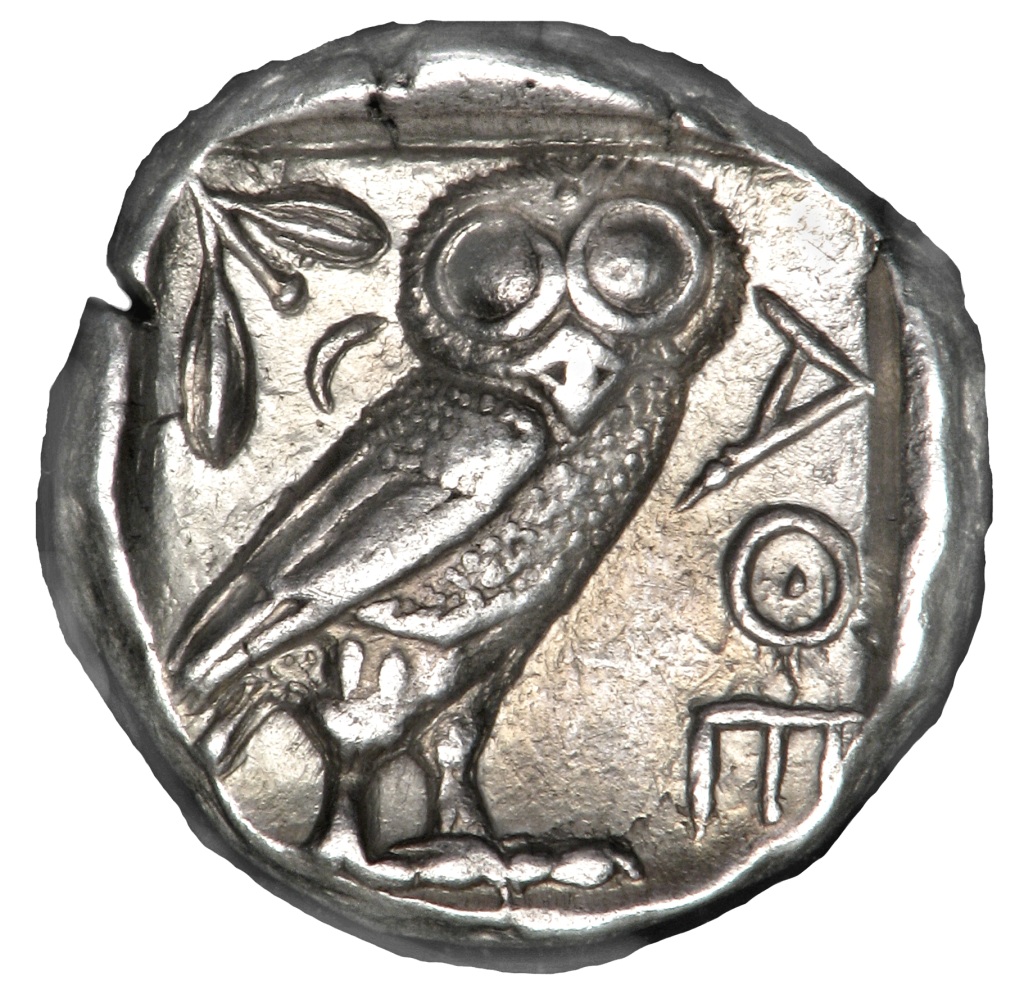 เหรียญของชาวลิเดียกลายเป็นต้นแบบให้กรีกโบราณเริ่มตีเหรียญของตนเอง พร้อมประทับสัญลักษณ์ของรัฐ รูปนกฮูกของเทพีอะธีนาซึ่งเป็นสัญลักษณ์ของปัญญาและเทพผู้อุปถัมภ์ของเมือง คาดว่าสิ่งนี้กลายเป็นต้นแบบของการนำตราประจำรัฐมาประทับบนเหรียญในเวลาต่อมา