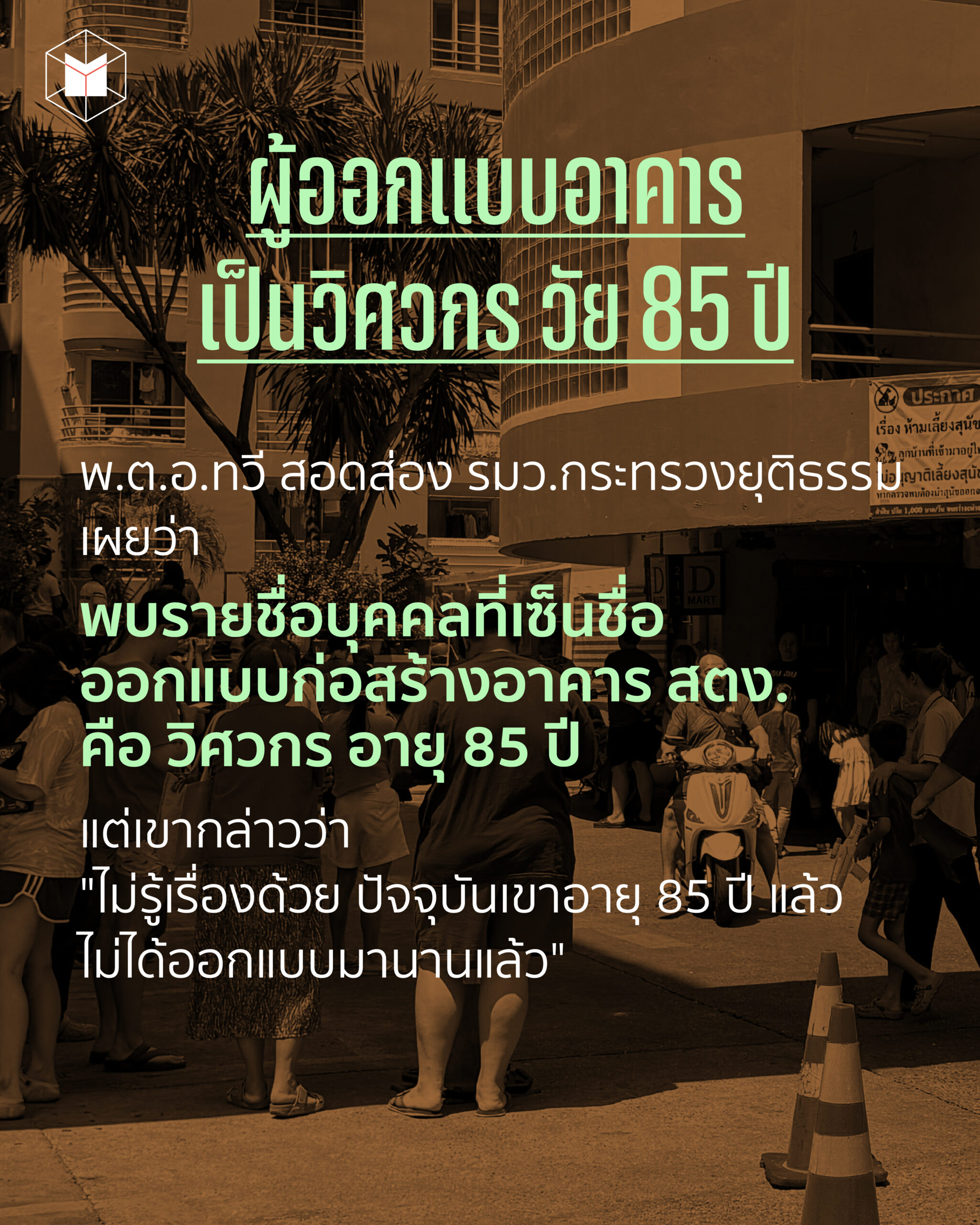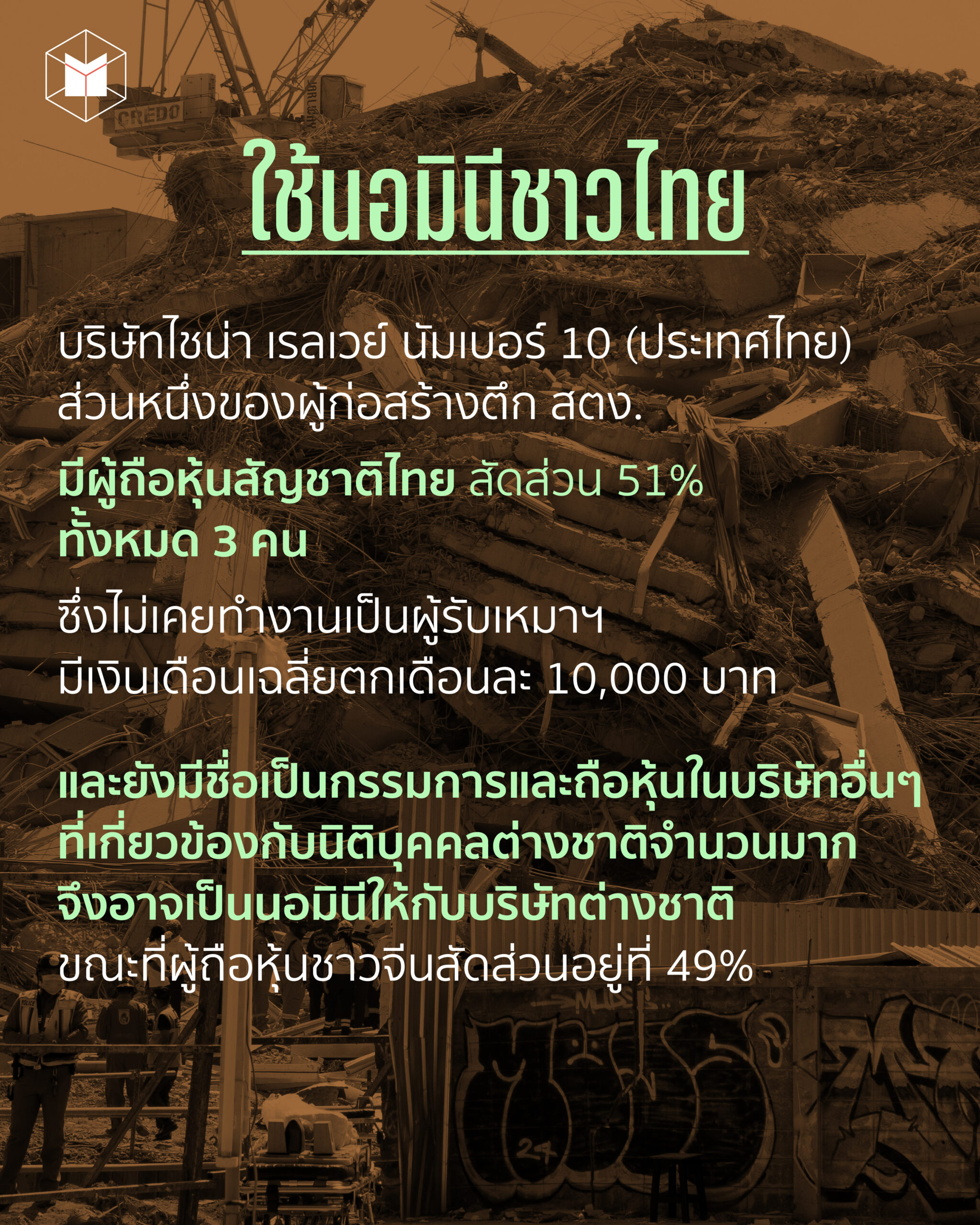 - การที่อาคารถล่มเกี่ยวข้องกับการคอร์รัปชันหรือไม่/อย่างไร ใครเป็นผู้อยู่เบื้องหลังที่ต้องนำตัวมาลงโทษ