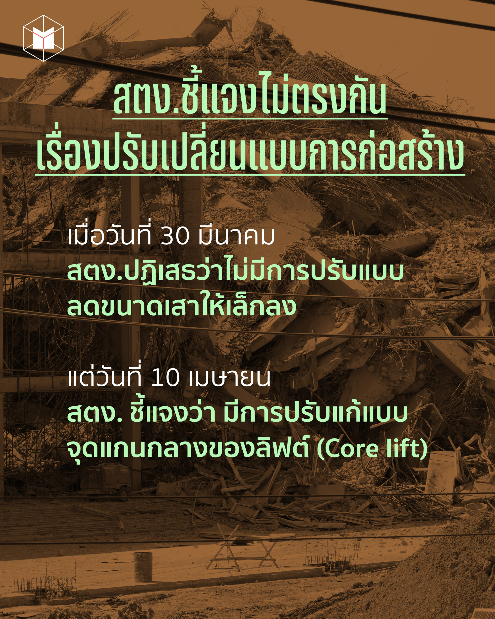 ดังนั้นการให้ข้อมูลเกี่ยวกับการปรับเปลี่ยนแบบก่อสร้างของ สตง.ในวันที่ 30 มีนาคม และ 10 เมษายน นั้นไม่สอดคล้องกัน