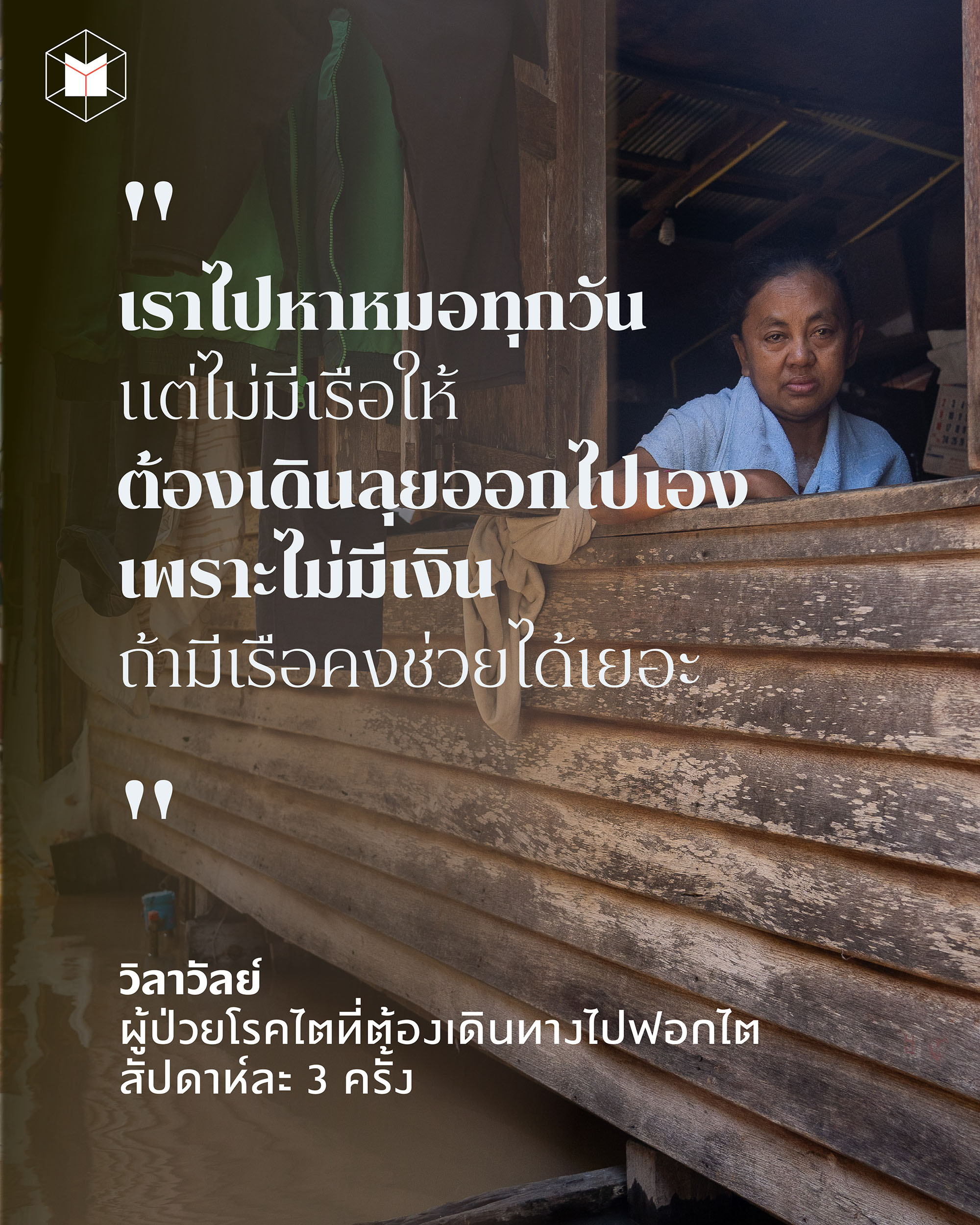 คำพูดของวิลาวัลย์สะท้อนภาพความยากลำบากได้อย่างชัดเจน ค่าเรือเที่ยวละ 20-30 บาทอาจไม่มากในช่วงสถานการณ์ปกติ แต่สำหรับหลายบ้านในช่วงที่รายได้แทบหายไปหมด เงินจำนวนนี้กลายเป็นภาระที่ต้องคิดหนัก ทำให้ผู้ป่วยบางคนจำใจต้องเลือกการลุยน้ำ แทนการจ่ายเงินเพื่อเดินทางไปรักษาตัวเอง