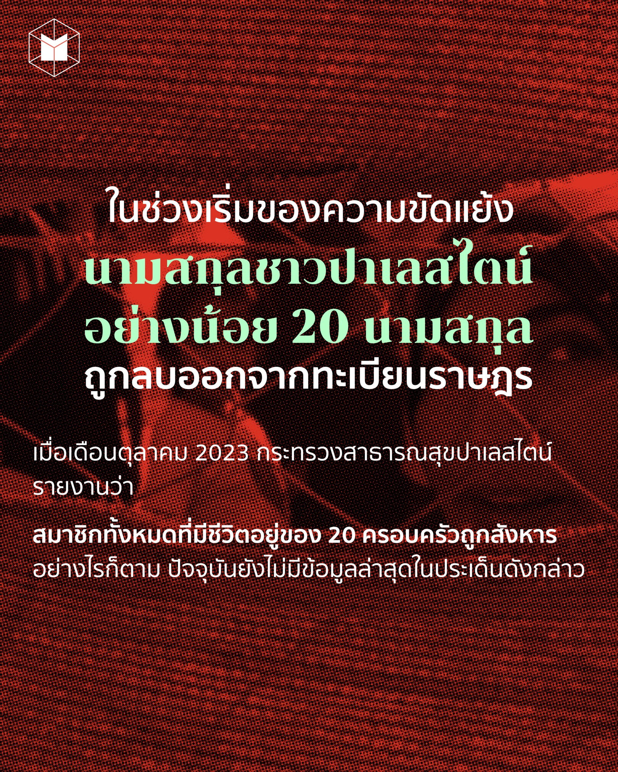 นามสกุลชาวปาเลสไตน์อย่างน้อย 20 นามสกุล ถูกลบออกจากทะเบียนราษฎร