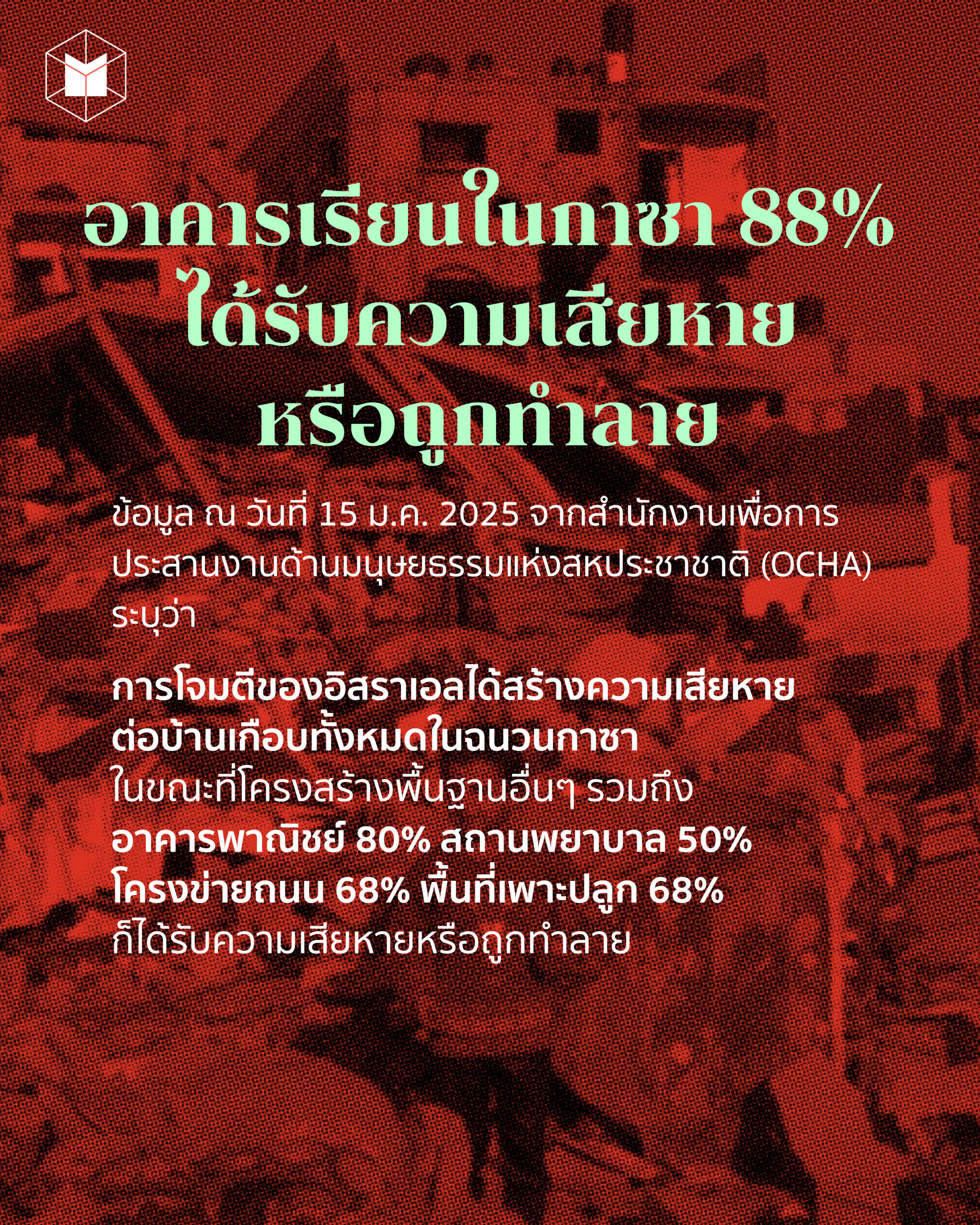 อาคารเรียนในกาซา 88% ได้รับความเสียหายหรือถูกทำลาย