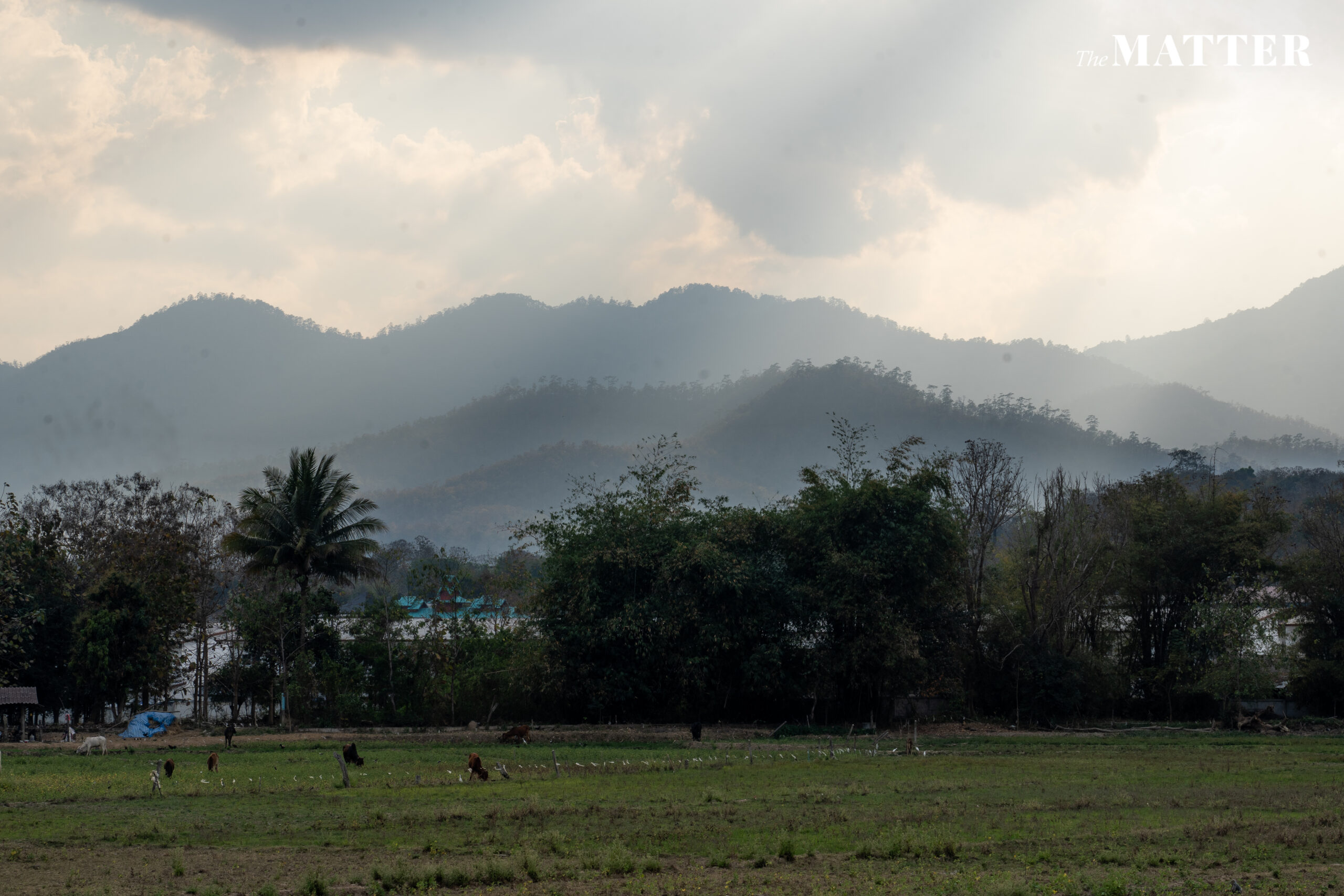 “อย่างปีที่แล้วก็มีทั้งฝุ่น ทั้งควัน แต่ทางดอยนู้น ช่วงมีนาคม-เมษายน เขาจะเผาป่ากัน ช่วงนั้นนะ แสบหูแสบตาไปหมด” ลุงผ่อนเล่าพร้อมกับชี้นิ้วไปที่ภูเขาลูกหนึ่งที่อยู่ห่างจากหน้าบ้านแกไปไม่ถึง 10 กม.