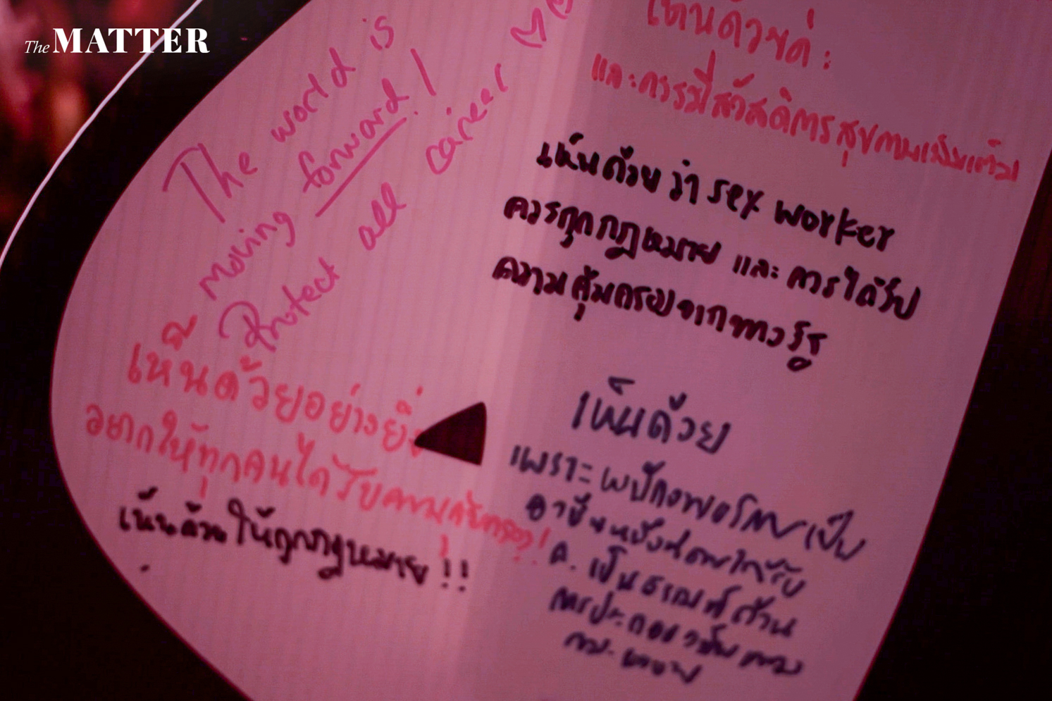 คือคนไม่ได้มองในทางกลับกันว่า ไอ้ความเสี่ยงเหล่านี้ ความเสี่ยงของการถูกกระทำความรุนแรง การไม่ได้รับการคุ้มครอง บางทีมันมาจากที่พวกคุณทั้งหลายนั่นแหละตีตราประณาม และเป็นส่วนหนึ่งในการหล่อเลี้ยงความรุนแรง คนในสังคมไทย มีอาการใจร้ายโดยไม่รู้ตัวมาโดยตลอด เนื่องจากมองไม่เห็นว่าเหตุปัจจัยอะไรบ้าง ที่ทำให้คนค้าบริการเขาเลือกที่จะค้าบริการ และการที่พวกเขาถูกตีตราประณาม ก็ยิ่งทำให้พวกเขาต้องเผชิญกับการถูกกระทำความรุนแรงในหลายๆ รูปแบบ หนึ่งคือ ถูกเรียกว่ากะหรี่